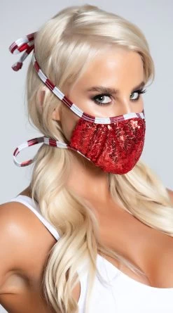 I Want Candy Striped Sequin Face Mask