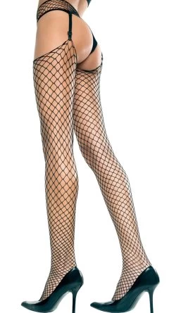 MUSIC LEGS Diamond Net Thigh High Stockings With Garter Belt