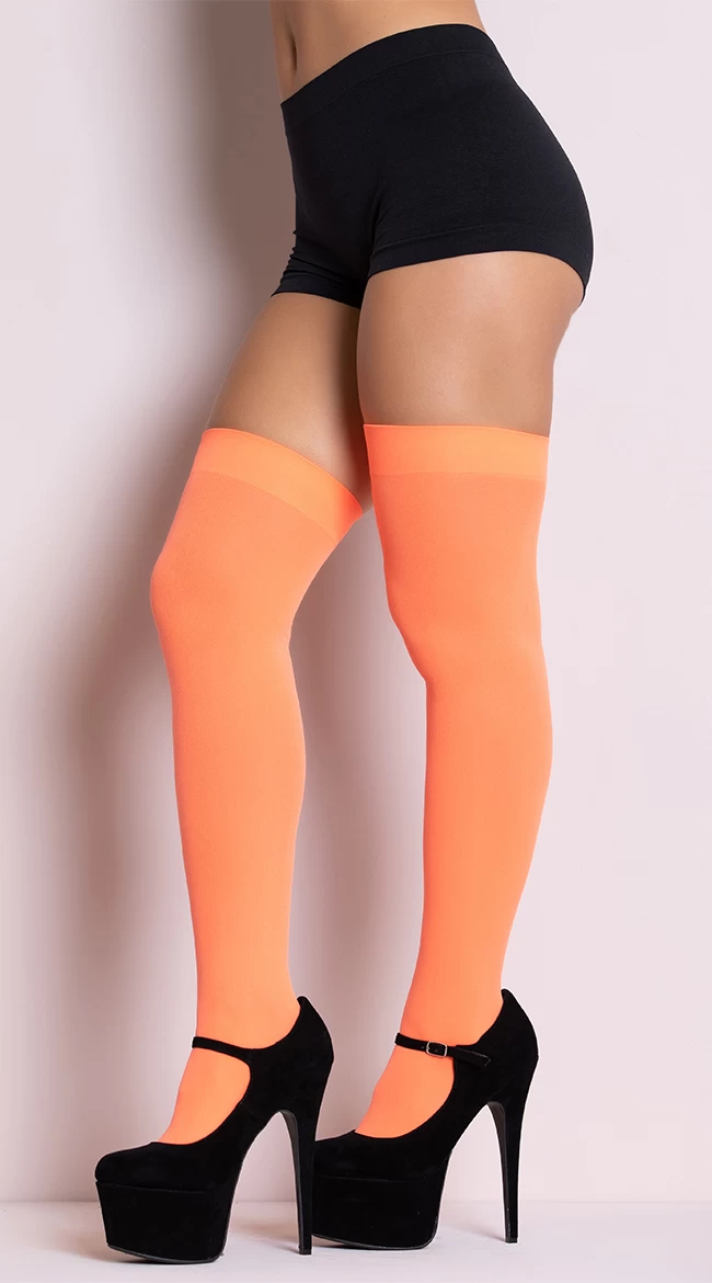 These opaque thigh highs feature a solid top band and comes in a variety of colors to match your outfit or costume!