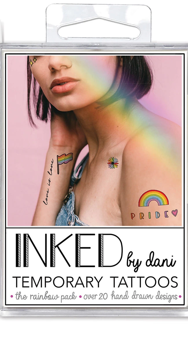 Taste the rainbow with this temporary tattoo pack featuring over 20 hand drawn styles that are perfect for any pride or summer festival. Wear your tattoos anywhere on your body and easily remove them when you are ready to show off another creative design!